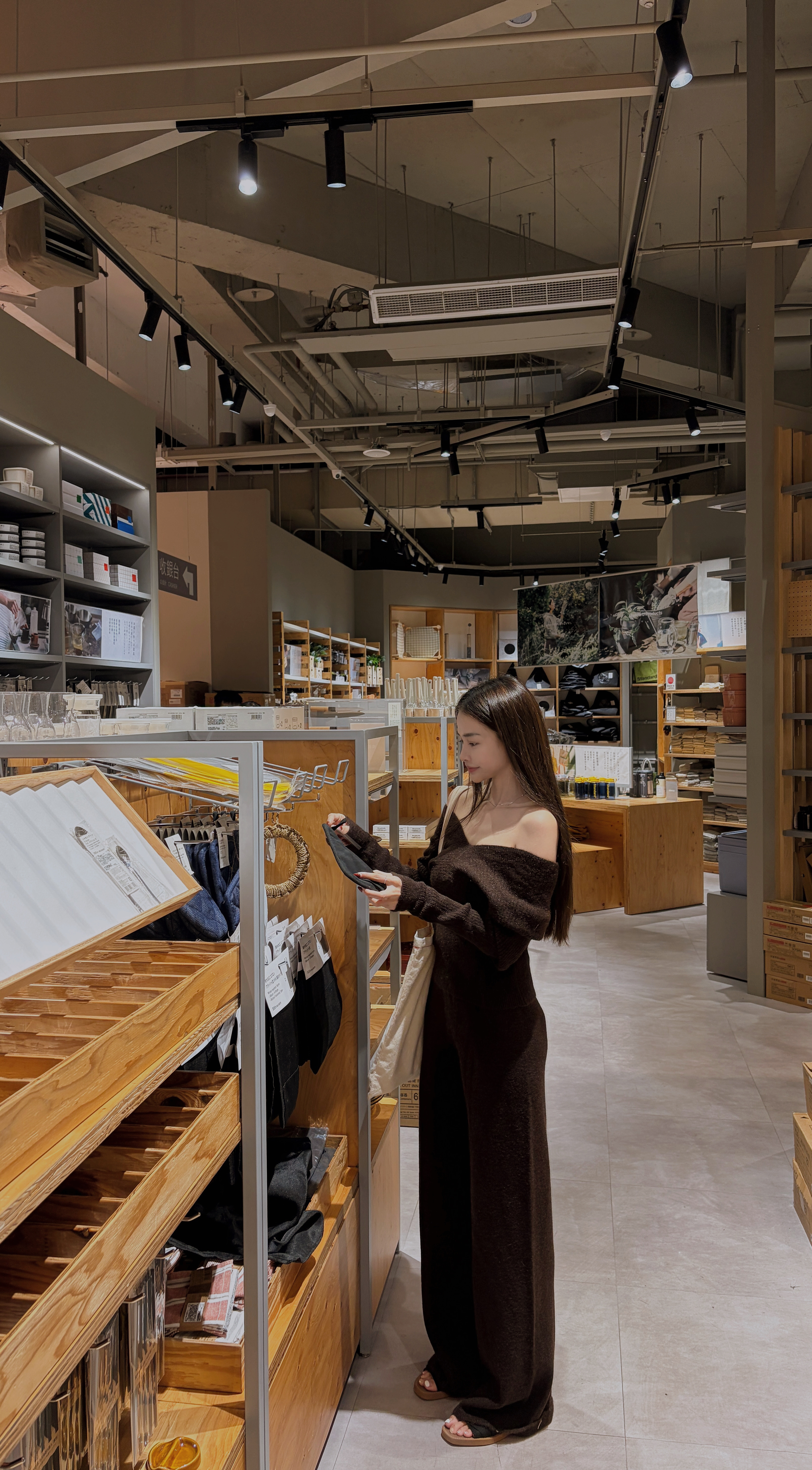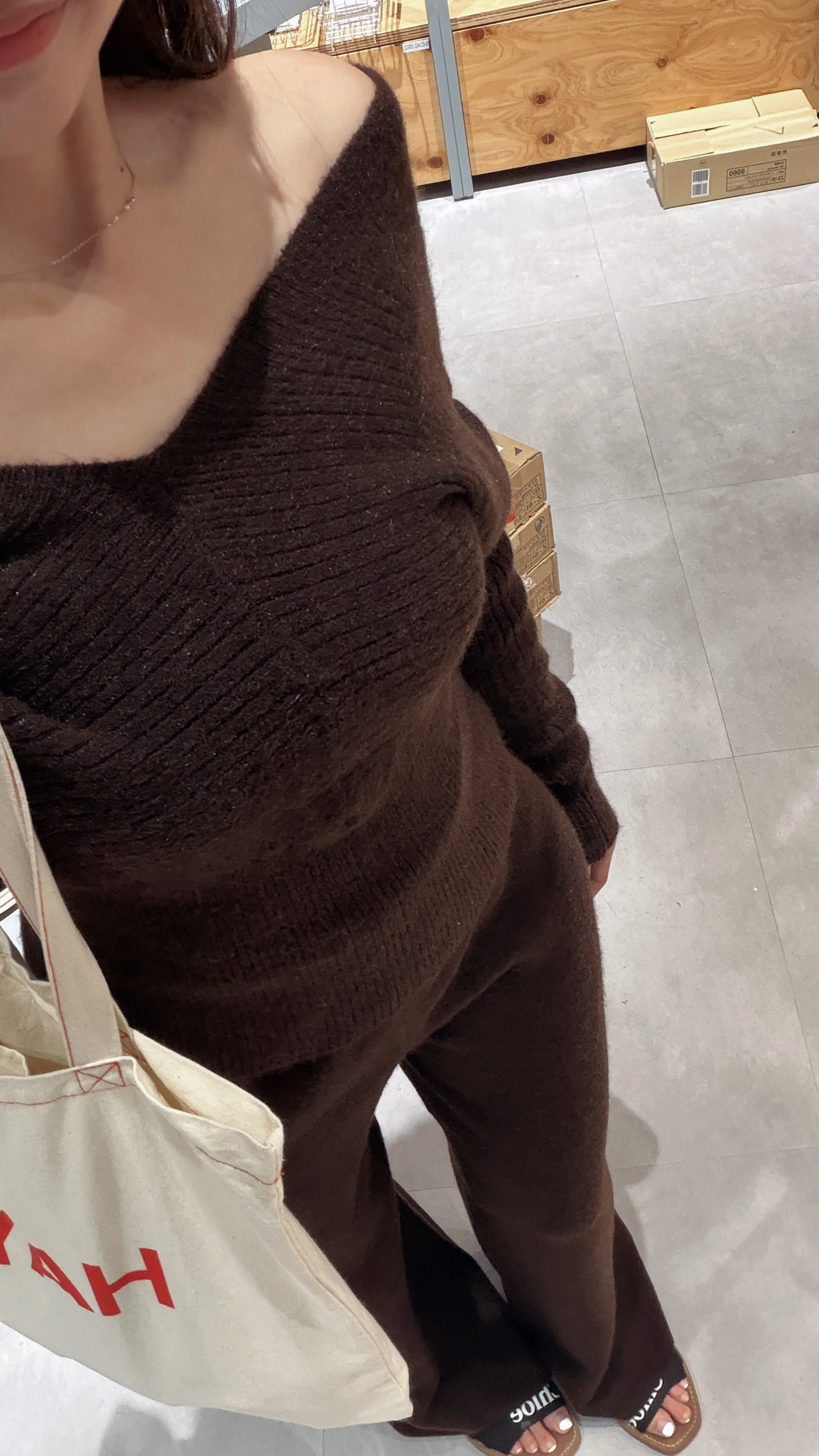 CASUAL氣質仙女v領露肩+針織褲套裝(深咖)